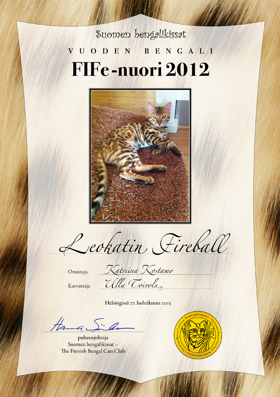 Suomen Bengalikissat ry:n vuoden 2012 parhaat kissat esittäytyvät.
