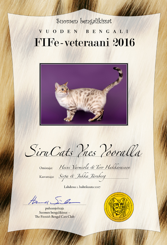 Vuoden FIFe-veteraani: SiruCats Ynes Yooralla