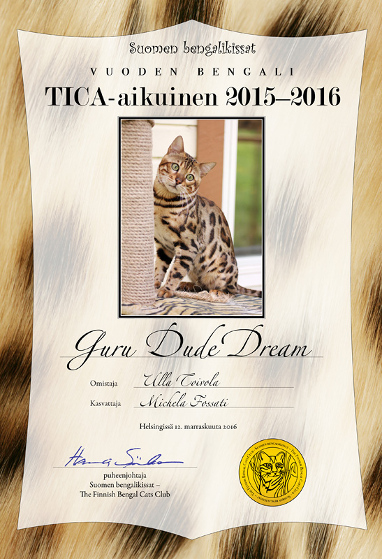 Suomen Bengalikissat ry:n vuoden 2016 parhaat kissat esittäytyvät.