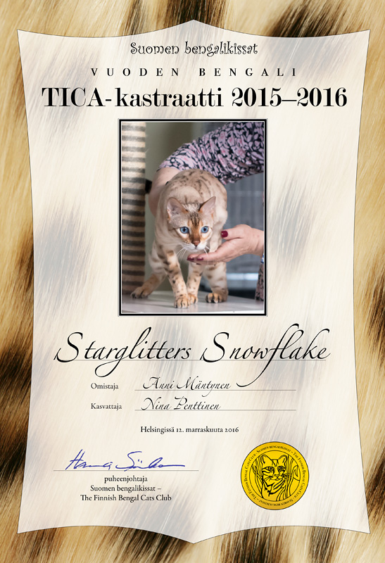 Vuoden TICA-kastraatti Starglitters Snowflake