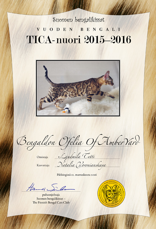 Vuoden TICA-nuori Bengaldon Ofelia Of AmberYard