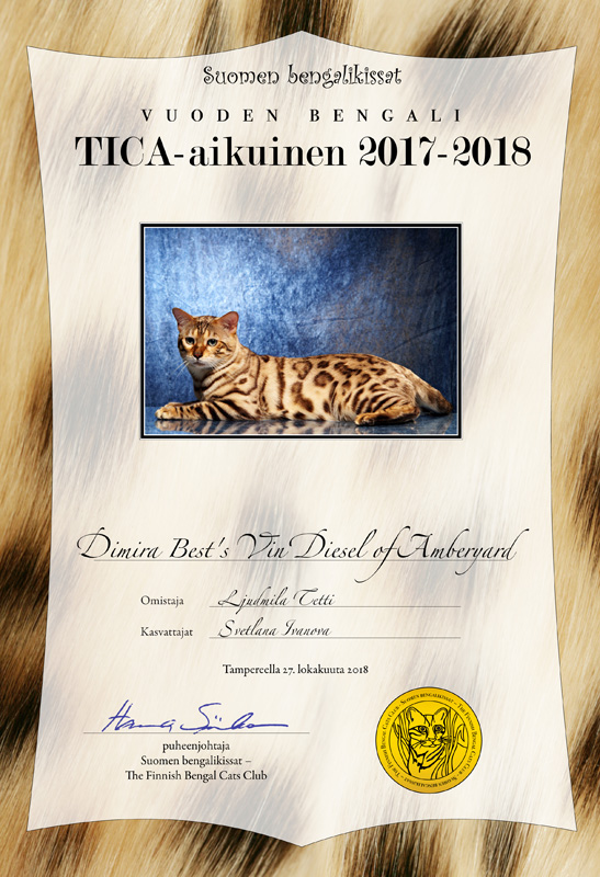 Vuoden TICA-aikuinen: Dimira Best's Vin Diesel of Amberyard
