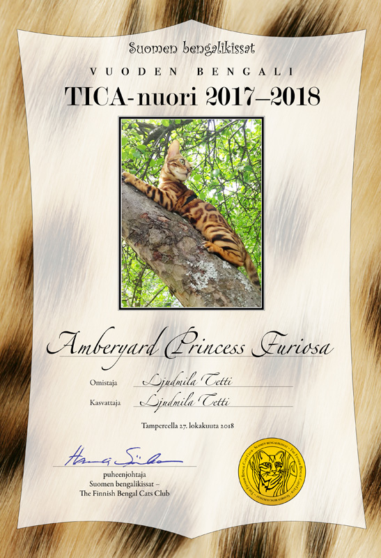 Vuoden TICA-nuori Amberyard Princess Furiosa