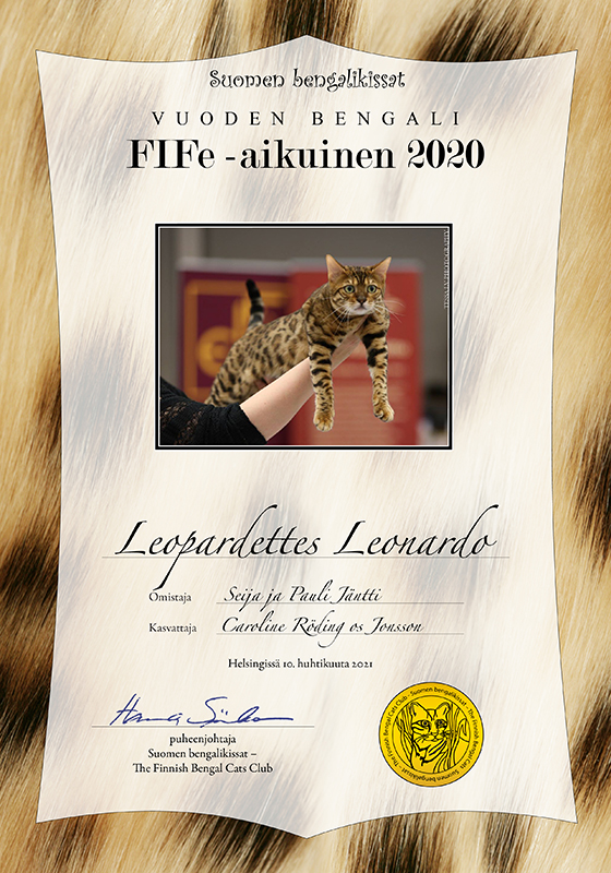 Suomen Bengalikissat ry:n vuoden 2020 parhaat kissat esittäytyvät.