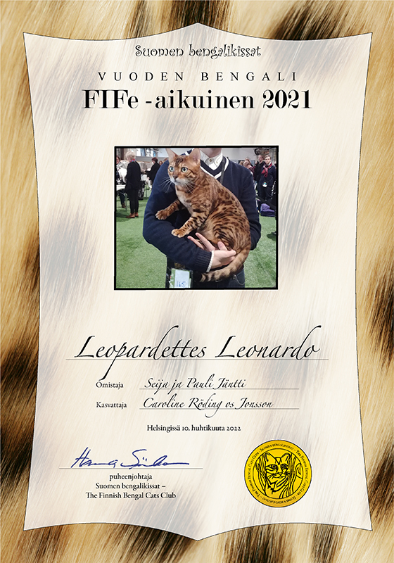 Suomen Bengalikissat ry:n vuoden 2021 parhaat kissat esittäytyvät.